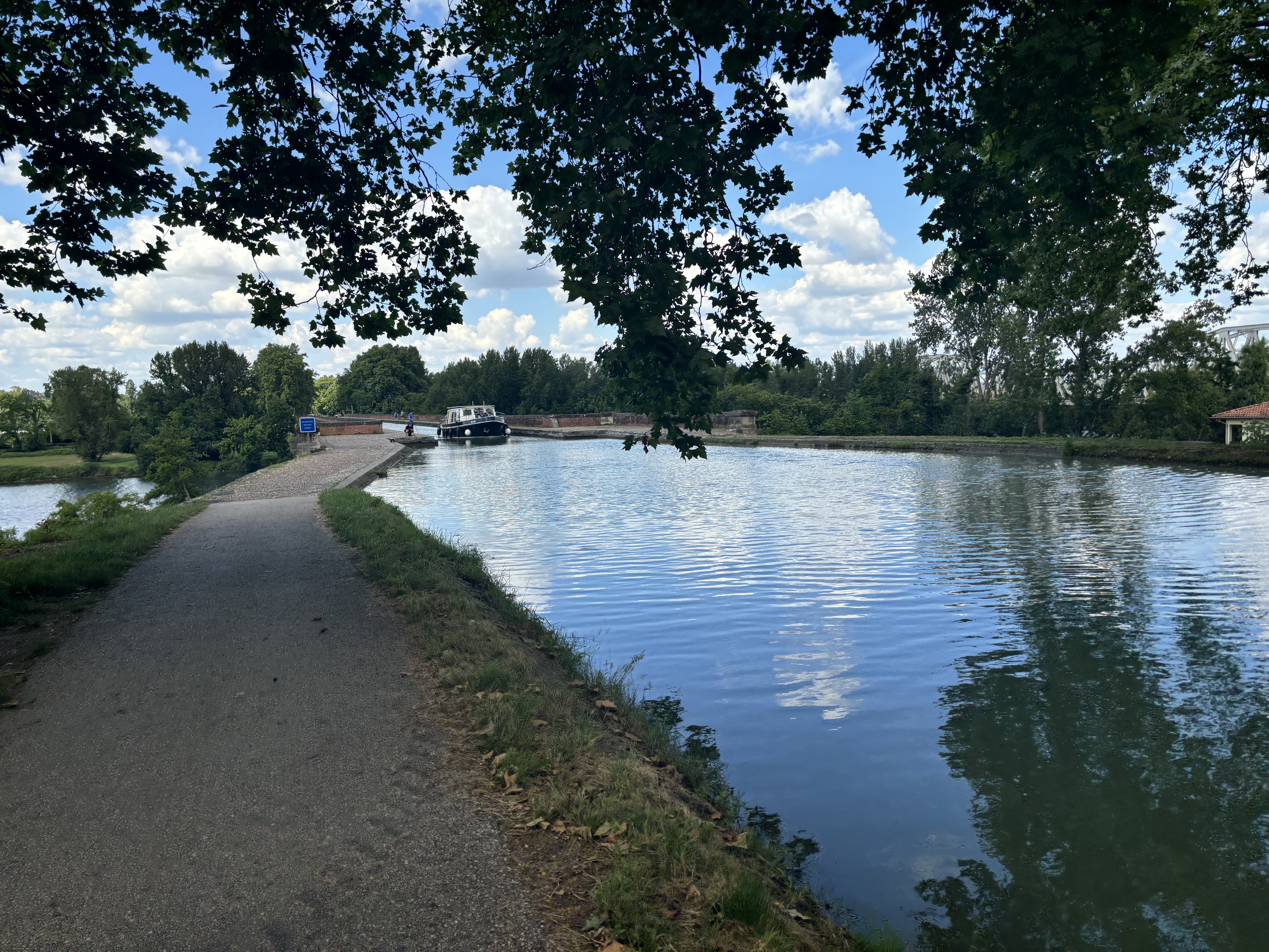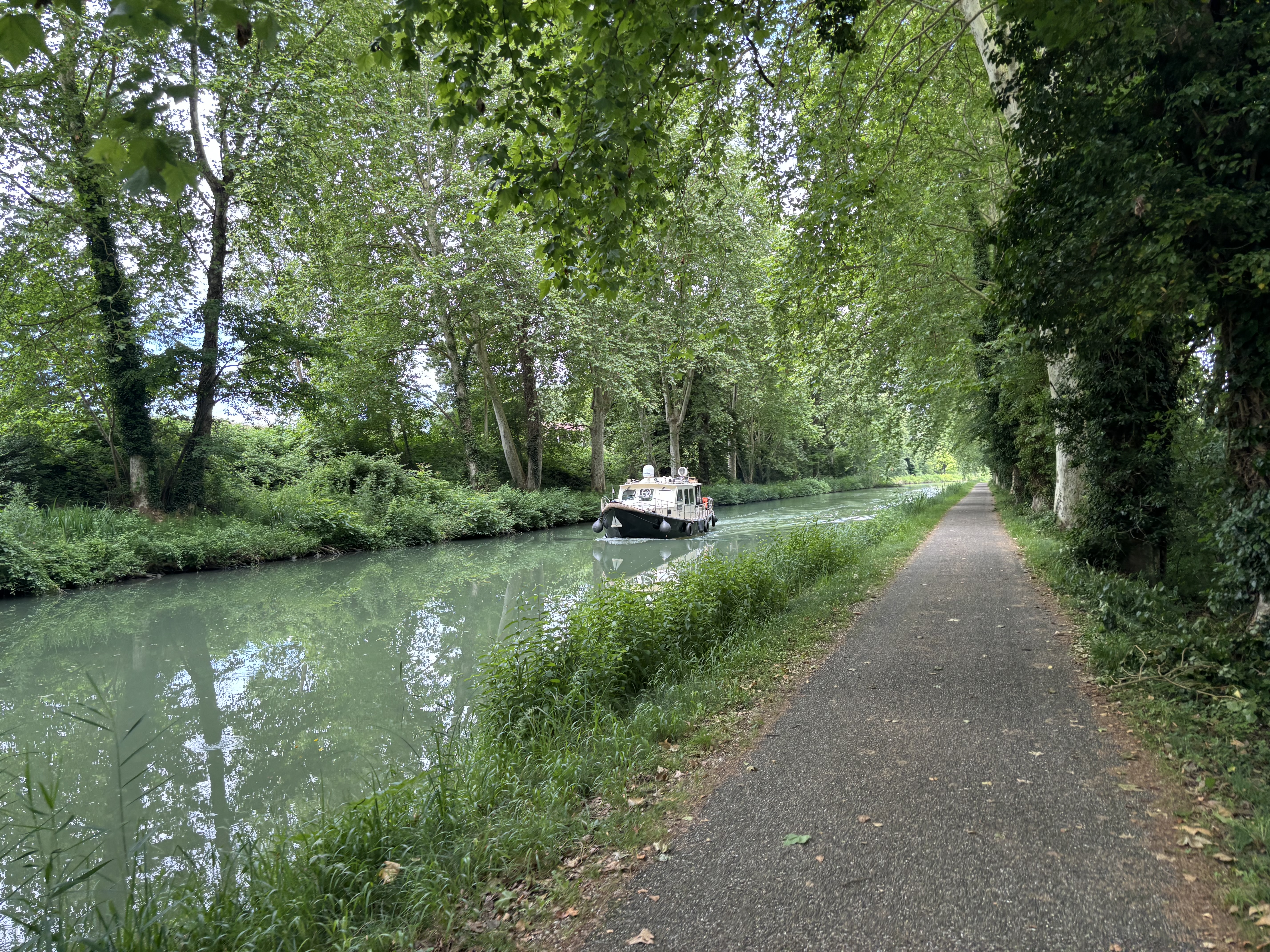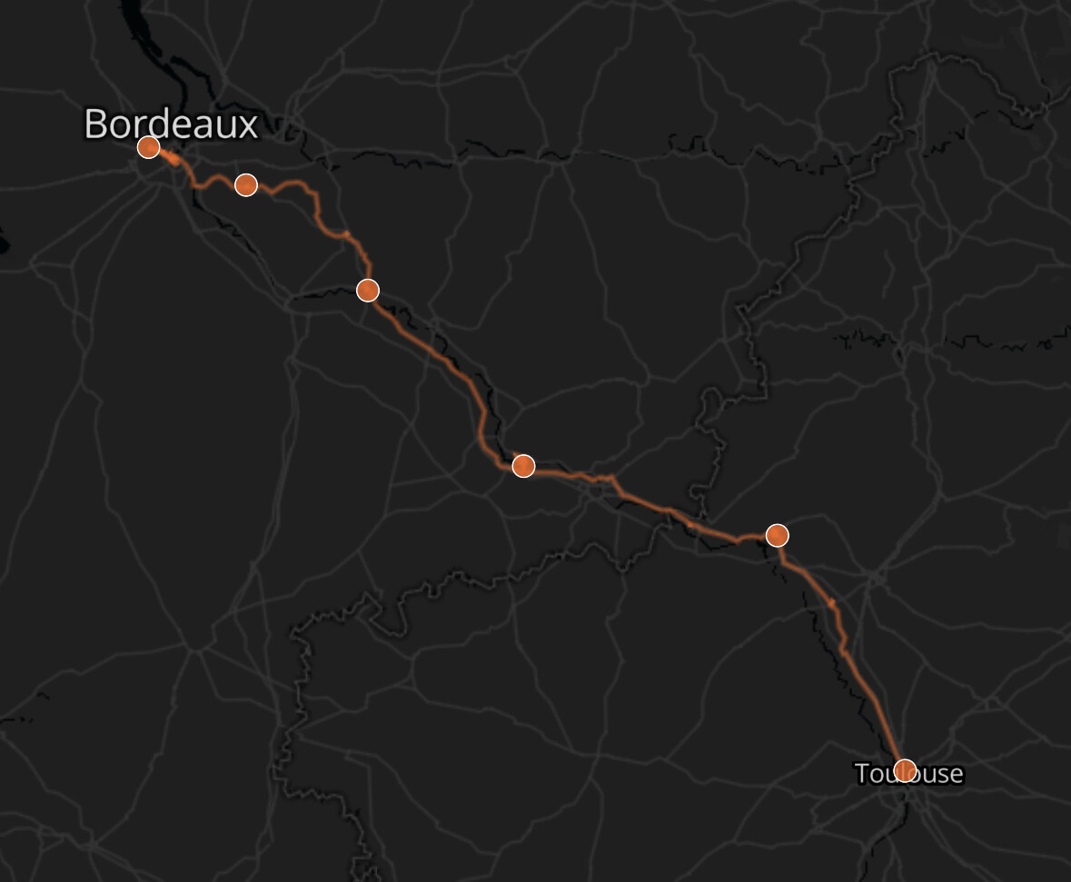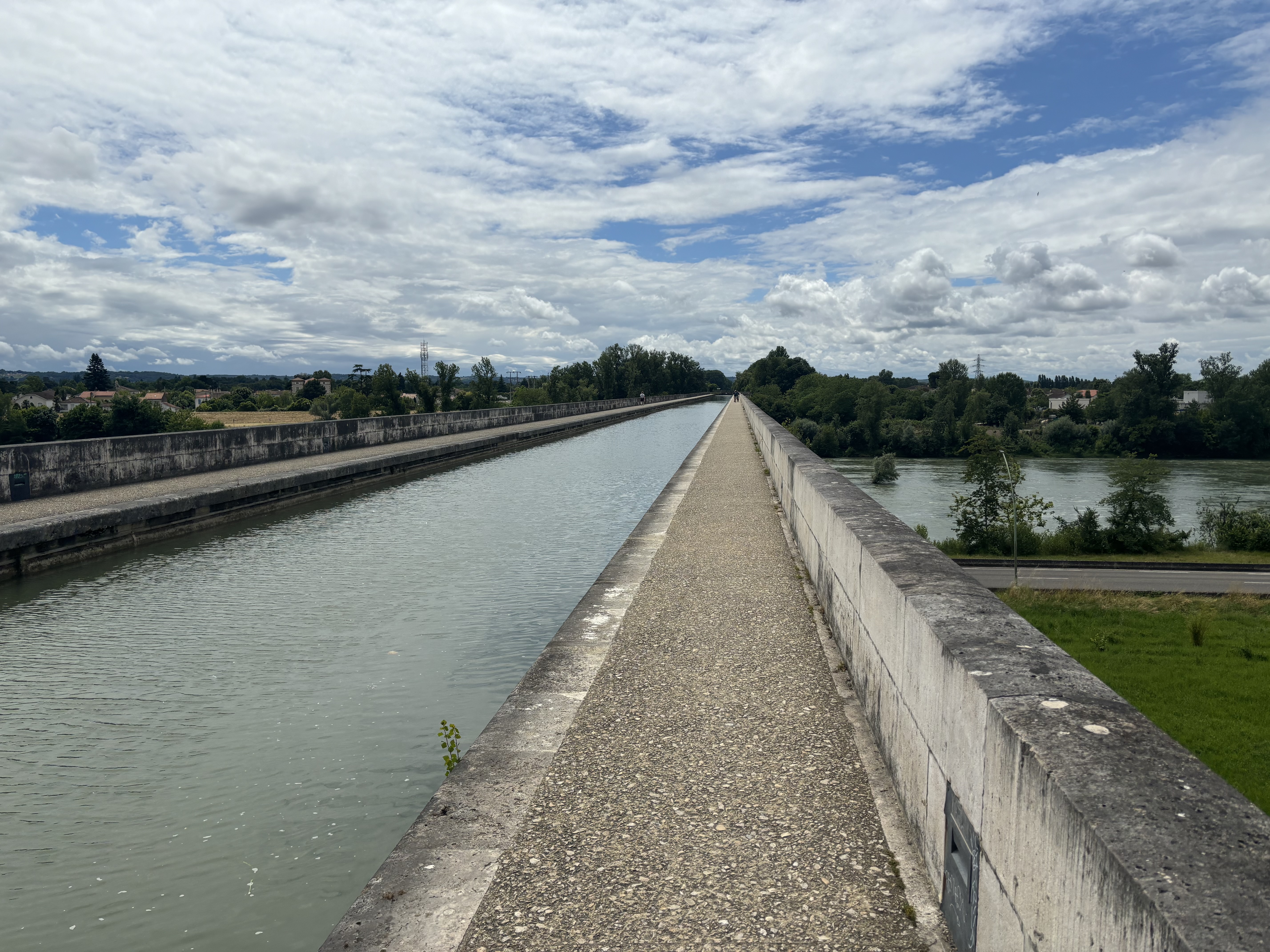 Nous nous projetions chaque jour pour faire entre 60 et 65km, c’était prévu comme cela dès le départ et nous nous y sommes tenus. Le deuxième jour fut pour moi le plus difficile avec le sac qui était un fardeau à porter, puis étonnamment le reste du séjour plus du tout ! Le 3 eme jour c’était un problème de frottement vis à vis de la selle qui était désagréable et rendait difficile la journée(sûrement un mauvais choix de tenue qui compte mais pas que), et les deux derniers jours, plus rien ! Trop cool ! L’avant dernier jour nous devions quitter le halage pour rejoindre 19km plus tard une autre voie verte, avec pas mal de dénivelés sur routes plutôt calmes, étonnement Gaëtan et moi avion une bonne forme et nous avons trouvé cela assez aisé malgré nos chargements, nous avons aussi éprouvé du contentement de casser la routine et la continuité du halage. L’approche de Bordeaux nous motivait sûrement énormément aussi.