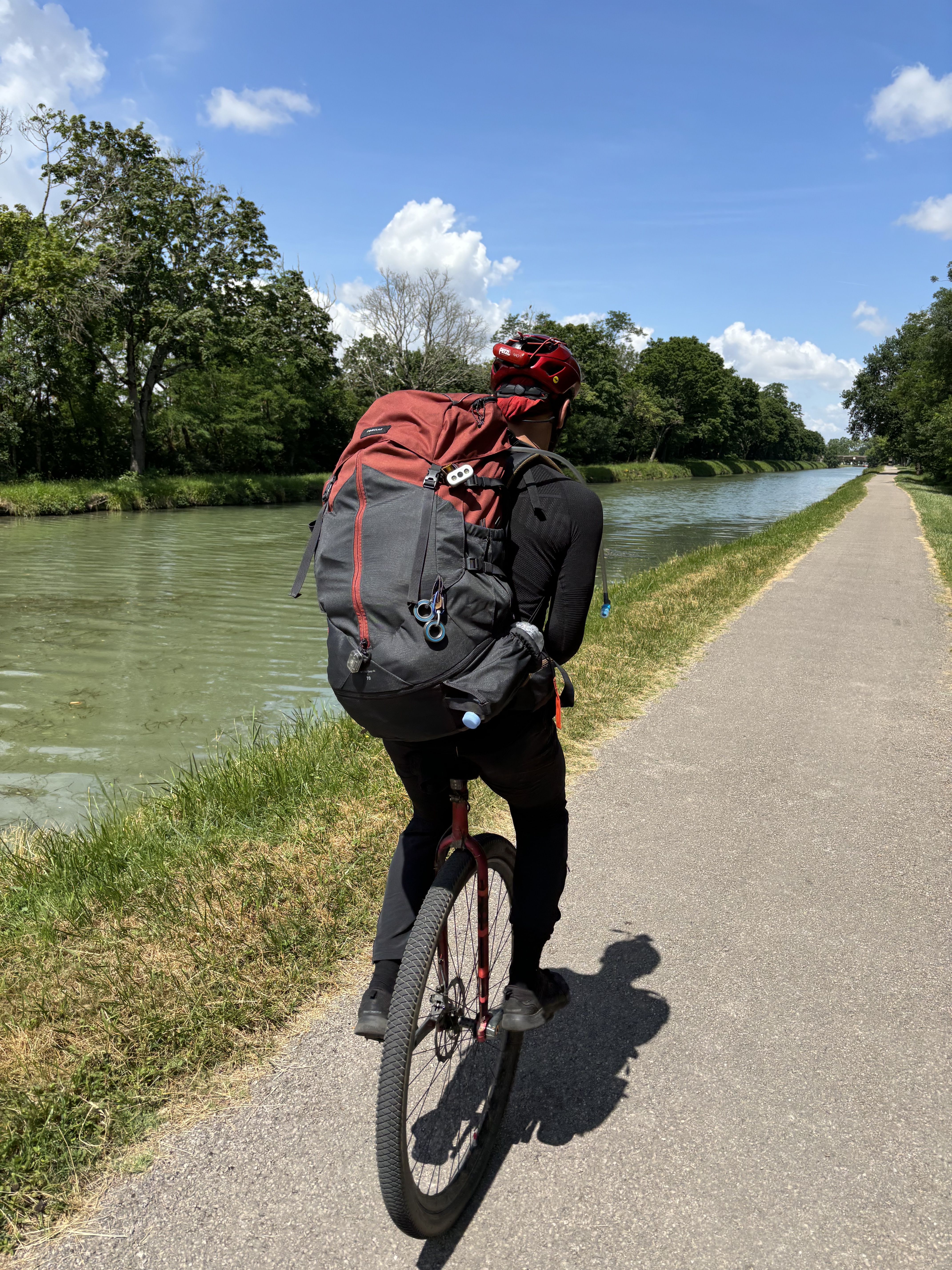 Je reviens après une semaine de balade aux longs chemins au départ de Toulouse jusqu’à Bordeaux en 5 jours avec Gaëtan d’Angers. Ça a été une belle expérience nous permettant de tester de nouvelles limites, notamment concernant le chargement, un sac de 19,8 kg pour moi sur le dos et un chargement similaire pour Gaëtan reparti sur son dos mais aussi sur son mono avec des portes bagages artisanaux.