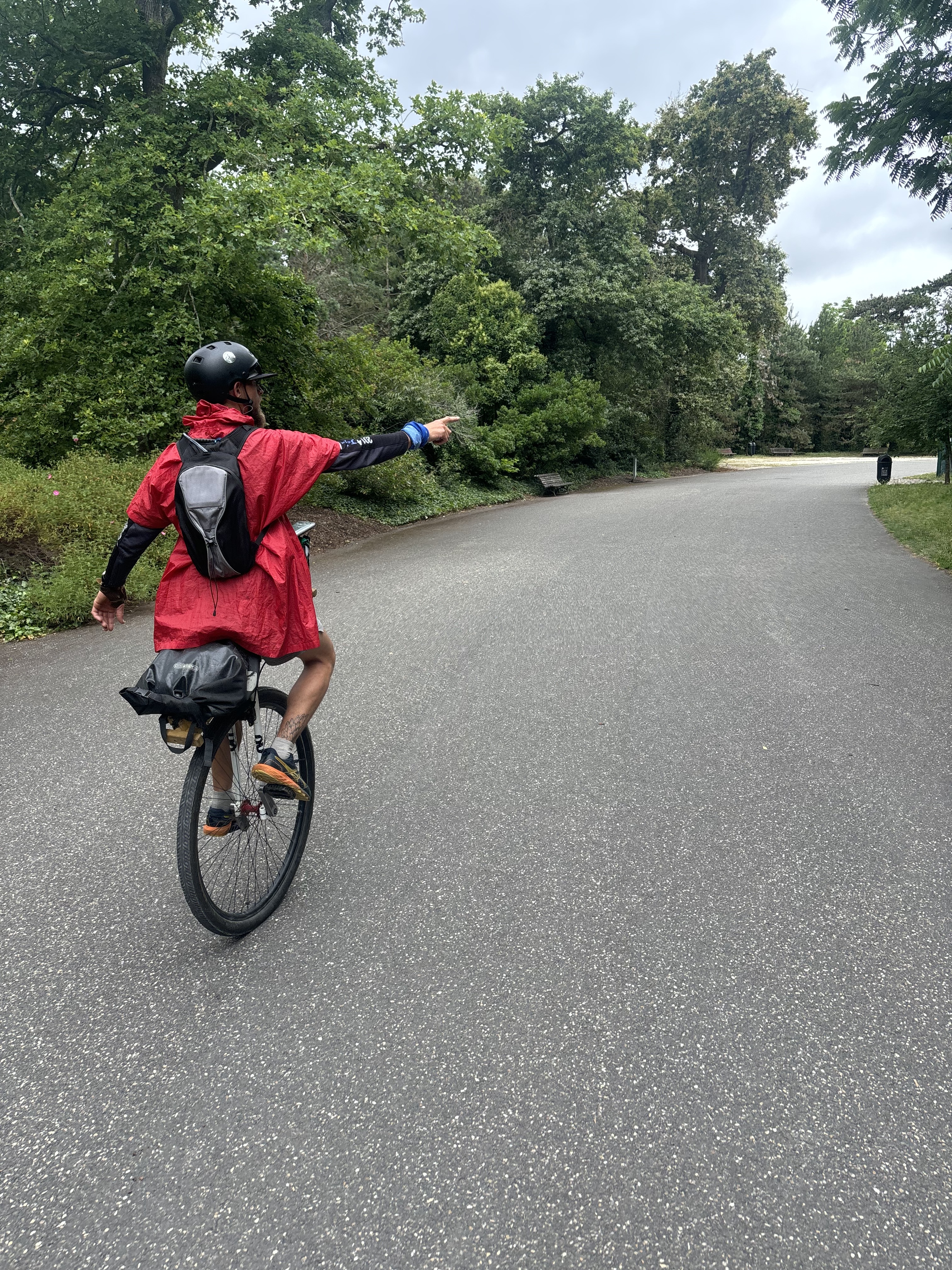 Nous avons pris le départ Aurélien et moi à monocycle sur la ligne au milieu des vélos, les premiers 150 km était plutôt faciles à passer avec cet axe à vitesse monté sur mon 29 pouces, au delà ça a été bien plus difficile que je ne l’imaginais de faire la performance avec cet axe à vitesse, qui permet de faire de belles pointes de vitesse mais qui est gros consommateur d’énergie. Je maintenais une « belle » cadence moyenne de 21km/h pendant les premiers 150km, au delà ça a été bien plus difficile.