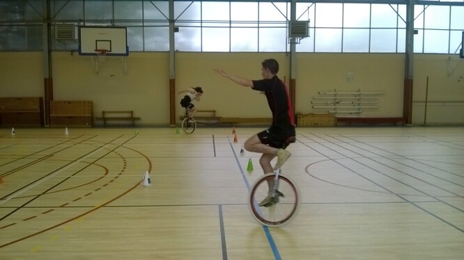 le slalom pour Hokey monté par Baptiste a été squaté par des rouleurs sur un pied, ou sur deux en marche arrière.