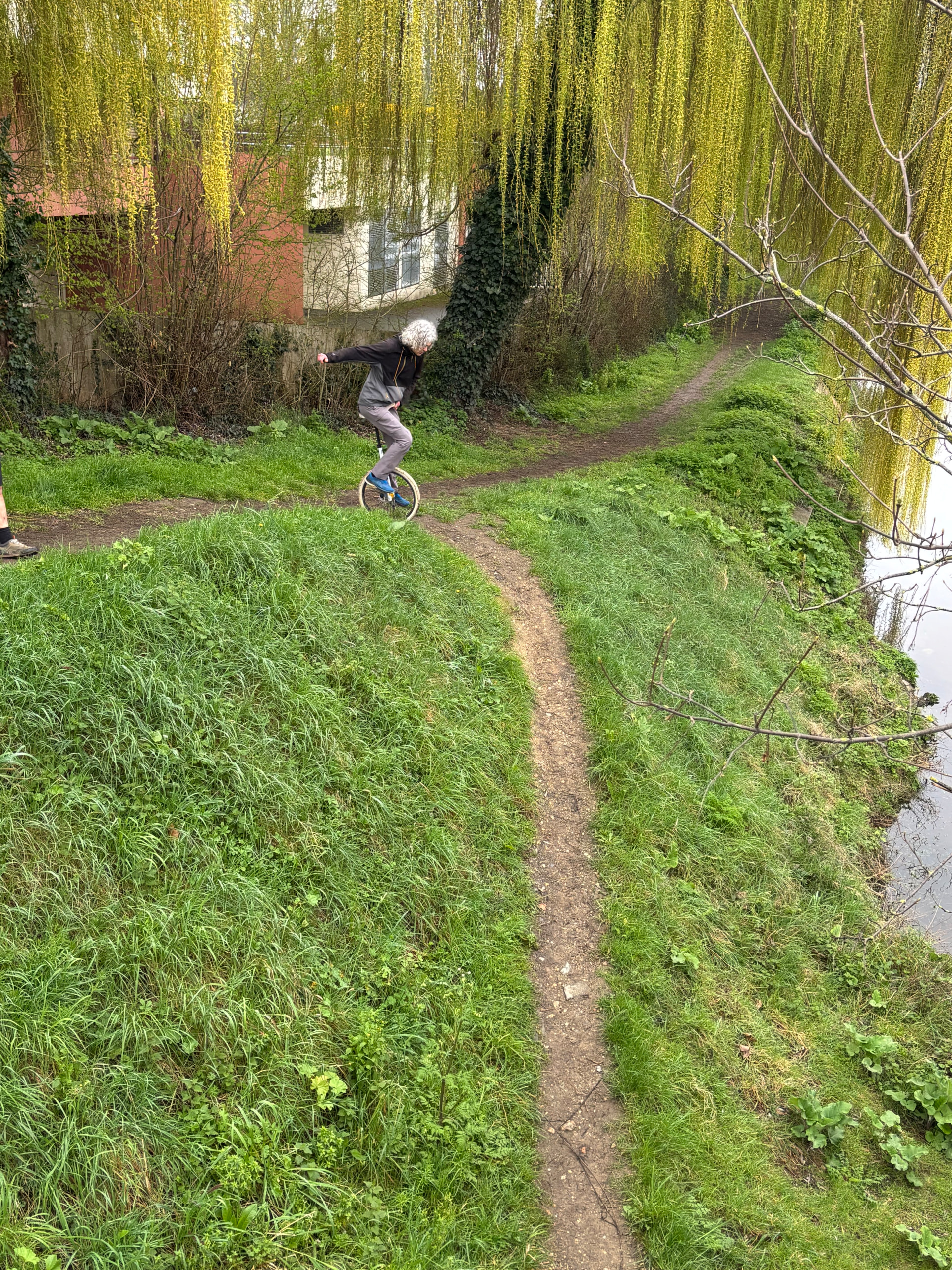 Il n’y avait que des roulants ce matin (à part le frère de Zélie qui est arrivé en retard) et le plateau était mouillé. Nous sommes allés sur les grands trottoirs faire des parcours, bosser le roll-up (en descente puis en montée pour les plus dégourdis sur un plan incliné qui offrait la hauteur adaptée à chaque niveau). Ensuite nous avons fait la fameuse mini-descente près de l’allée Louise Weiss (grasse à souhait, tour du chêne et multiples tentatives de remontée).